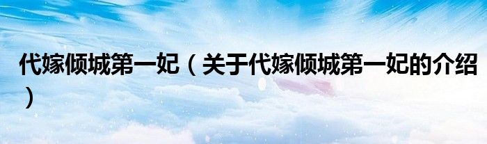 代嫁倾城第一妃(关于代嫁倾城第一妃的介绍)