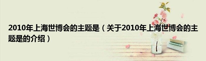 大家好,小都来为大家解答以上的问题。2010年上海世博会的主题是,关于2010年上海世博会的主题是的介绍很多人还不知道,现在让我们一起来看看吧!