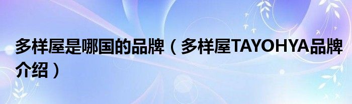 大家好,小源来为大家解答以上问题。多样屋是哪国的品牌,多样屋TAYOHYA品牌介绍很多人还不知道,现在让我们一起来看看吧!