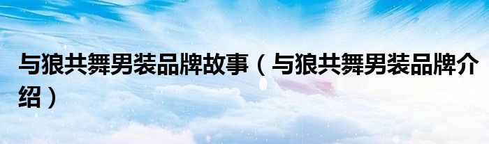 大家好,小源来为大家解答以上问题。与狼共舞男装品牌故事,与狼共舞男装品牌介绍很多人还不知道,现在让我们一起来看看吧!