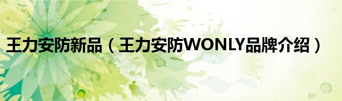大家好,小源来为大家解答以上问题。王力安防新品,王力安防WONLY品牌介绍很多人还不知道,现在让我们一起来看看吧!