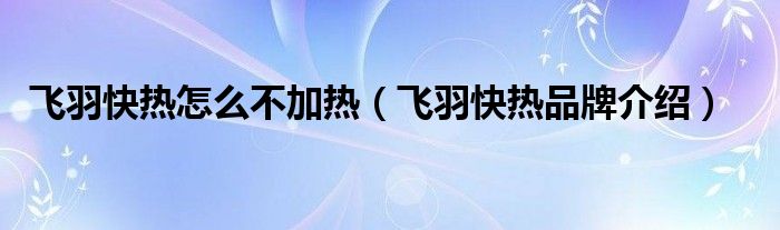 大家好,小源来为大家解答以上问题。飞羽快热怎么不加热,飞羽快热品牌介绍很多人还不知道,现在让我们一起来看看吧!