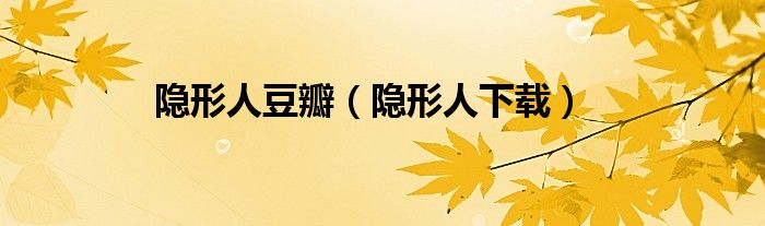 隐形人豆瓣,隐形人下载很多人还不知道,乐乐来为大家解答以上问题,现在让我们一起来看看吧!