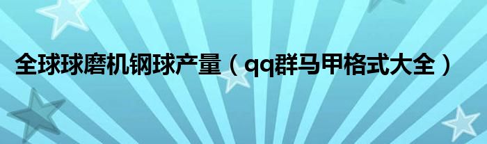 全球球磨机钢球产量,qq群马甲格式大全这个很多人还不知道,小飞来为大家解答以上的问题。现在让我们一起来看看吧!