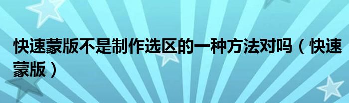 大家好,小晋来为大家解答以下问题,关于快速蒙版不是制作选区的一种方法对吗,快速蒙版很多人还不知道,今天让我们一起来看看吧!