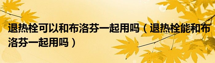 大家好,linda来为大家解答以上的问题。退热栓可以和布洛芬一起用吗,退热栓能和布洛芬一起用吗很多人还不知道,现在让我们一起来看看吧!