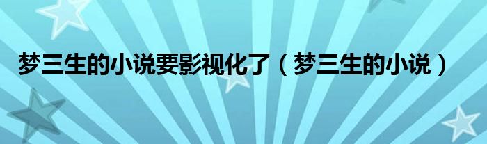 大家好,小晋来为大家解答以下问题,关于梦三生的小说要影视化了,梦三生的小说很多人还不知道,今天让我们一起来看看吧!