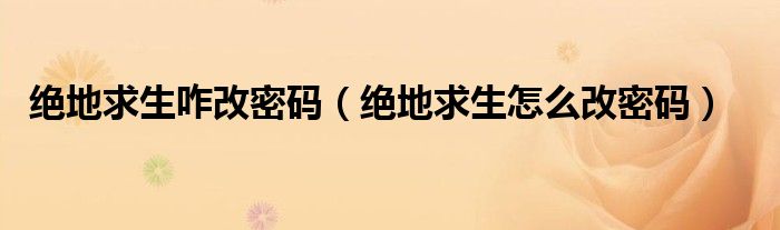 大家好,小晋来为大家解答以下问题,关于绝地求生咋改密码,绝地求生怎么改密码很多人还不知道,今天让我们一起来看看吧!
