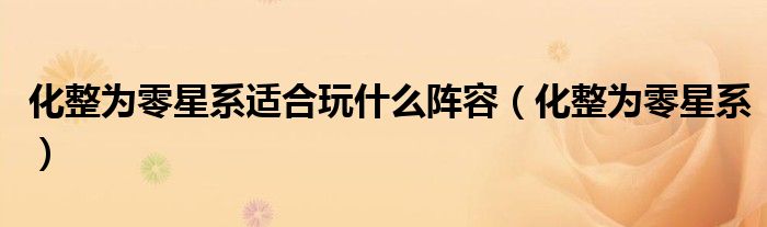 大家好,雨雨来为大家解答以上问题,化整为零星系适合玩什么阵容,化整为零星系很多人还不知道,现在让我们一起来看看吧!