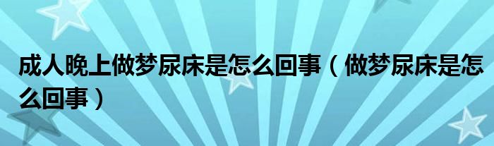 大家好,linda来为大家解答以上的问题。成人晚上做梦尿床是怎么回事,做梦尿床是怎么回事很多人还不知道,现在让我们一起来看看吧!