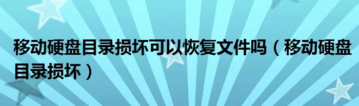 大家好,雨雨来为大家解答以上问题,移动硬盘目录损坏可以恢复文件吗,移动硬盘目录损坏很多人还不知道,现在让我们一起来看看吧!