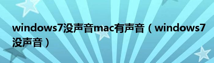 大家好,雨雨来为大家解答以上问题,windows7没声音mac有声音,windows7没声音很多人还不知道,现在让我们一起来看看吧!