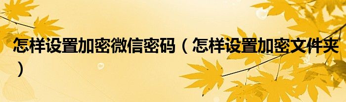 大家好,雨雨来为大家解答以上问题,怎样设置加密微信密码,怎样设置加密文件夹很多人还不知道,现在让我们一起来看看吧!