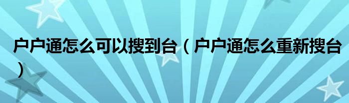 户户通怎么可以搜到台(户户通怎么重新搜台)