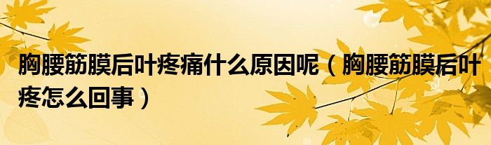 大家好,linda来为大家解答以上的问题。胸腰筋膜后叶疼痛什么原因呢,胸腰筋膜后叶疼怎么回事很多人还不知道,现在让我们一起来看看吧!