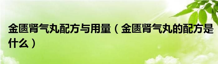 大家好,linda来为大家解答以上的问题。金匮肾气丸配方与用量,金匮肾气丸的配方是什么很多人还不知道,现在让我们一起来看看吧!