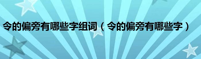 大家好,小晋来为大家解答以下问题,关于令的偏旁有哪些字组词,令的偏旁有哪些字很多人还不知道,今天让我们一起来看看吧!