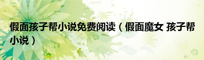 大家好,小晋来为大家解答以下问题,关于假面孩子帮小说免费阅读,假面魔女 孩子帮 小说很多人还不知道,今天让我们一起来看看吧!
