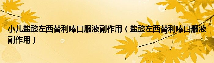 大家好,linda来为大家解答以上的问题。小儿盐酸左西替利嗪口服液副作用,盐酸左西替利嗪口服液副作用很多人还不知道,现在让我们一起来看看吧!