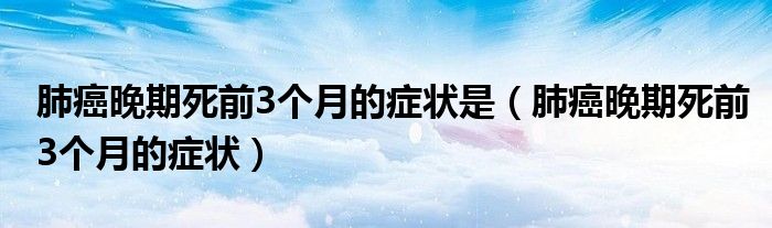 大家好,linda来为大家解答以上的问题。肺癌晚期死前3个月的症状是,肺癌晚期死前3个月的症状很多人还不知道,现在让我们一起来看看吧!