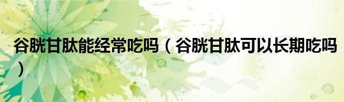 大家好,linda来为大家解答以上的问题。谷胱甘肽能经常吃吗,谷胱甘肽可以长期吃吗很多人还不知道,现在让我们一起来看看吧!