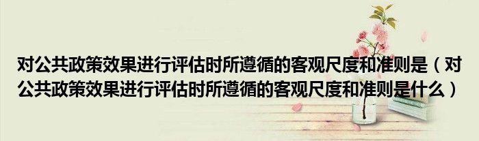 关于对公共政策效果进行评估时所遵循的客观尺度和准则是,对公共政策效果进行评估时所遵循的客观尺度和准则是什么这个很多人还不知道,今天菲菲来为大家解答以上的问题,现在让我们一起来看看吧!