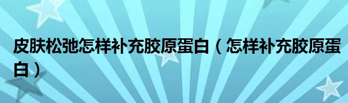 大家好,linda来为大家解答以上的问题。皮肤松弛怎样补充胶原蛋白,怎样补充胶原蛋白很多人还不知道,现在让我们一起来看看吧!