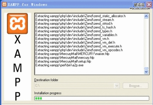 3、xampp下载完毕后,直接点击.exe程序安装,应用程序自动解压提取相关文件。