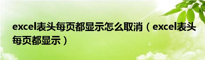 大家好,小晋来为大家解答以下问题,关于excel表头每页都显示怎么取消,excel表头每页都显示很多人还不知道,今天让我们一起来看看吧!