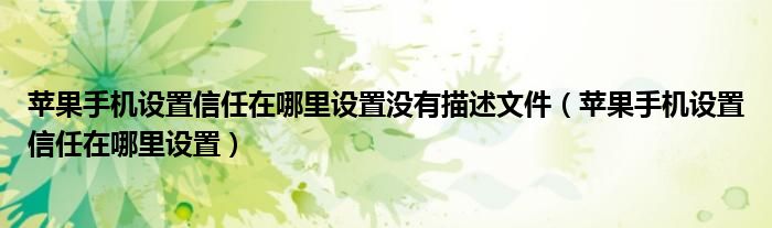 大家好,小晋来为大家解答以下问题,关于苹果手机设置信任在哪里设置没有描述文件,苹果手机设置信任在哪里设置很多人还不知道,今天让我们一起来看看吧!