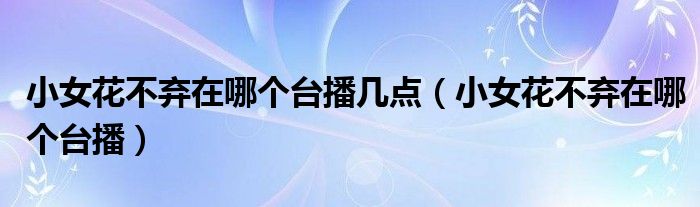 大家好,小晋来为大家解答以下问题,关于小女花不弃在哪个台播几点,小女花不弃在哪个台播很多人还不知道,今天让我们一起来看看吧!