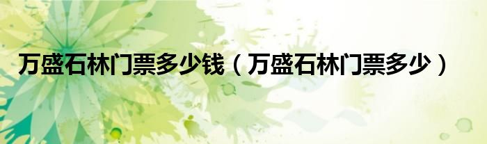 万盛石林门票多少钱(万盛石林门票多少)