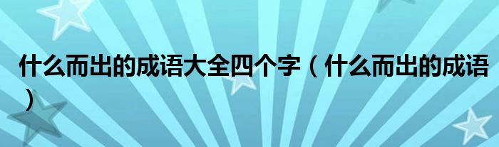 大家好,小晋来为大家解答以下问题,关于什么而出的成语大全四个字,什么而出的成语很多人还不知道,今天让我们一起来看看吧!