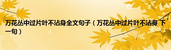 大家好,小晋来为大家解答以下问题,关于万花丛中过片叶不沾身全文句子,万花丛中过片叶不沾身 下一句很多人还不知道,今天让我们一起来看看吧!