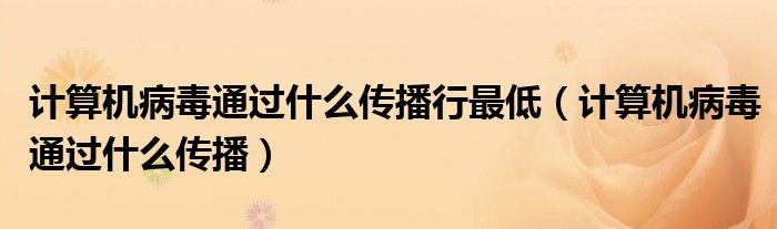 大家好,小晋来为大家解答以下问题,关于计算机病毒通过什么传播行最低,计算机病毒通过什么传播很多人还不知道,今天让我们一起来看看吧!