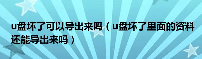 大家好,小晋来为大家解答以下问题,关于u盘坏了可以导出来吗,u盘坏了里面的资料还能导出来吗很多人还不知道,今天让我们一起来看看吧!