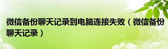 大家好,小晋来为大家解答以下问题,关于微信备份聊天记录到电脑连接失败,微信备份聊天记录很多人还不知道,今天让我们一起来看看吧!