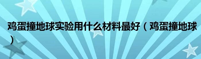 大家好,小晋来为大家解答以下问题,关于鸡蛋撞地球实验用什么材料最好,鸡蛋撞地球很多人还不知道,今天让我们一起来看看吧!