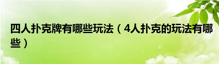 大家好,小晋来为大家解答以下问题,关于四人扑克牌有哪些玩法,4人扑克的玩法有哪些很多人还不知道,今天让我们一起来看看吧!