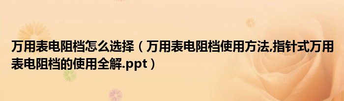 万用表电阻档怎么选择(万用表电阻档使用方法,指针式万用表电阻档的使用全解.ppt)
