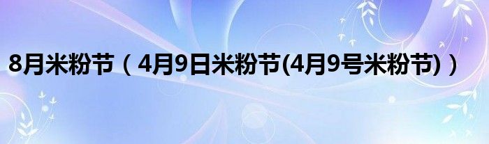 大家好,小常来为大家解答以上问题。8月米粉节,4月9日米粉节(4月9号米粉节)很多人还不知道,现在让我们一起来看看吧!