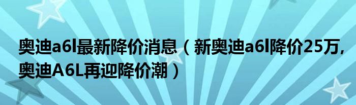 大家好,小常来为大家解答以上问题。奥迪a6l最新降价消息,新奥迪a6l降价25万,奥迪A6L再迎降价潮很多人还不知道,现在让我们一起来看看吧!