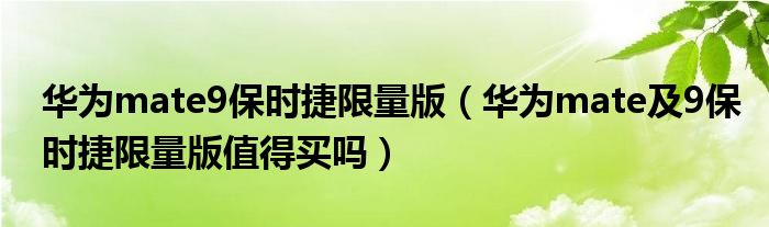 1,华为mate 9保时捷限量版值得买吗:Mate 9 保时捷设计定制版很不错,在华为商城限量发售,目前已经售完。以下是产品介绍:1、Mate9保时捷设计定制版,由保时捷设计公司设计师亲自操刀,采用5.5英寸2K曲面柔性屏,外观采用跑车流线对称设计,黑色金属机身,最厚7.5mm,最薄处2.5mm,使用的是前置指纹。2、Mate 9 Porsche Design搭载麒麟960处理器,集成Mali-G71 GPU,支持最新图形标准Vulkan。网络方面支持Cat.12 4G LTE网络全球通。3、Mate9 Porsche Design内置4000mAh电池,支持华为智电5.0以及3.5-5V/5A的SuperCharge的快充技术。4、后置第二代与徕卡联合设计的双摄像头,1200万像素彩色加2000万像素黑白,F2.2光圈,内置于SoC处理器的深度ISP ,支持OIS光学防抖、激光/相位/深度/对比度四合一混合对焦 、双倍光学变焦、,前置800万,F1.9光圈,自动对焦,自拍效果更美好。可以到华为官网查询产品详细参数信息。