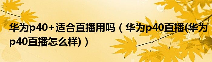 大家好,小常来为大家解答以上问题。华为p40+适合直播用吗,华为p40直播(华为p40直播怎么样)很多人还不知道,现在让我们一起来看看吧!