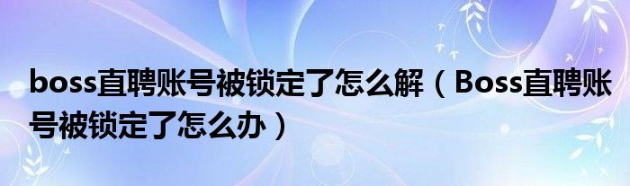 boss直聘账号被锁定了怎么解(Boss直聘账号被锁定了怎么办)