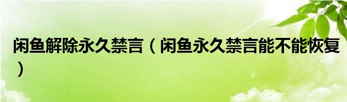 闲鱼解除永久禁言(闲鱼永久禁言能不能恢复)