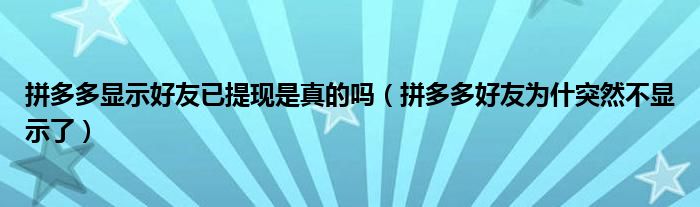 拼多多显示好友已提现是真的吗(拼多多好友为什突然不显示了)