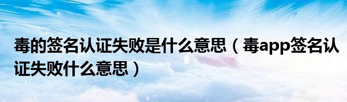 大家好,跳跳为你解答以上问题。毒的签名认证失败是什么意思,毒app签名认证失败什么意思这个问题很多人还不知道,现在让我们一起来看看吧!