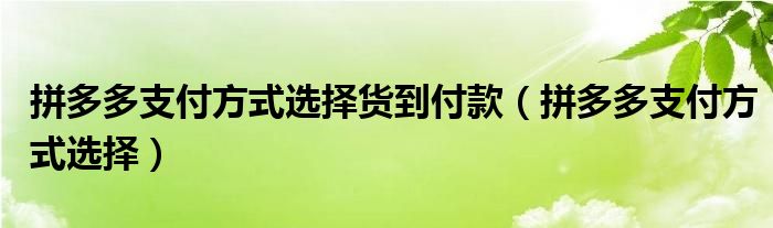 拼多多支付方式选择货到付款(拼多多支付方式选择)