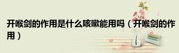 大家好,linda来为大家解答以上的问题。开喉剑的作用是什么咳嗽能用吗,开喉剑的作用很多人还不知道,现在让我们一起来看看吧!